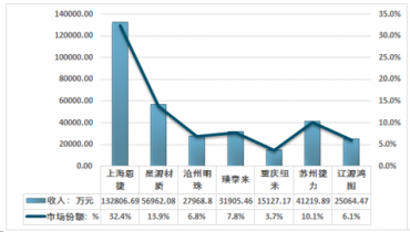 2018年上海恩捷鋰電隔膜業務收入為13.28億元,占行業總量的32.4%;星源材質鋰電隔膜業務收入為5.70億元,占比為13.9%;滄海明珠鋰電隔膜業務收入為2.80億元,占比為6.9%;璞泰來鋰電隔膜業務收入為3.19億元,占比為7.80%。