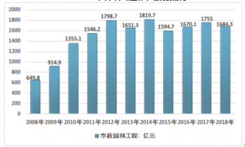 2008-2018年中國園林綠化行業(yè)市場規(guī)模及增速情況