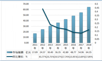 2011-2018年我國油氣彈簧市場規模及增速走勢圖 |