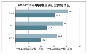 2018年我國電主軸行業產量30.5萬支,同比2017年的24.4萬支增長了25%,2018年我國電主軸行業需求量約41.1萬支,同比2017年的36.7萬支增長了11.99%.