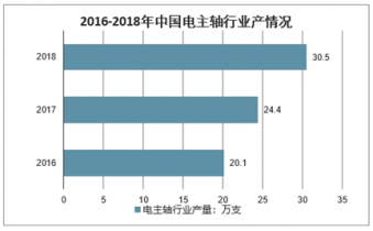 2018年我國電主軸行業產量30.5萬支,同比2017年的24.4萬支增長了25%。