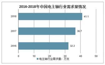 2018年我國電主軸行業需求量約41.1萬支,同比2017年的36.7萬支增長了11.99%.