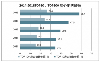 2014-2018TOP10、TOP100 房企銷售份額