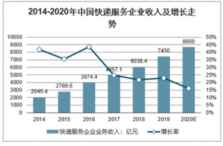 2014-2020年中國快遞服務(wù)企業(yè)收入及增長(zhǎng)走勢(shì)