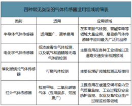 四種常見類型的氣體傳感器適用領域明細表