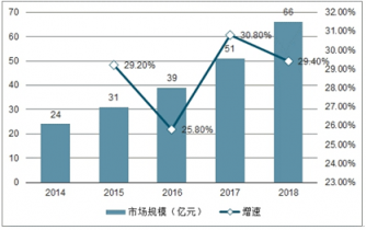2014-2018年分子診斷市場(chǎng)規(guī)模及增速(億元)