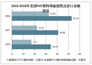 2016-2018年美國進口PVC塑料地板及美國PVC塑料地板銷售金額情況