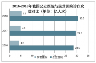 2016-2018年我國公立醫(yī)院與民營醫(yī)院診療次數(shù)對比(單位:億人次)