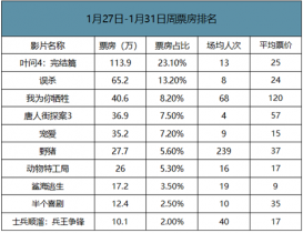 1月27日-1月31日周票房排名