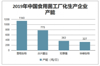 目前我國(guó)食用菌工廠(chǎng)化生產(chǎn)的行業(yè)標(biāo)準(zhǔn)制定比較滯后,缺乏分區(qū)域、分品種、分環(huán)節(jié)的生產(chǎn)標(biāo)準(zhǔn),生產(chǎn)企業(yè)都是按照自己制定的工藝流程和操作模式進(jìn)行生產(chǎn),一些新建企業(yè)甚至沒(méi)有標(biāo)準(zhǔn)盲目生產(chǎn)。行業(yè)整體集中度較低,截至到2019年6月,食用菌工廠(chǎng)化生產(chǎn)企業(yè)競(jìng)爭(zhēng)格局未發(fā)生較大改變,雪榕生物、眾興菌業(yè)、如意情以及華綠生物仍是排名前四企業(yè),其中,從產(chǎn)能方面來(lái)看,雪榕生物以1140噸的日產(chǎn)能排名第.一;眾興菌業(yè)緊隨其后,日產(chǎn)能為775噸;2019年被豫園股份收購(gòu)的如意情排名第三,日產(chǎn)能約為363萬(wàn)噸;華綠生物億327萬(wàn)噸的日產(chǎn)能排名第四位。