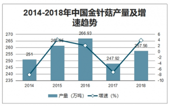 2014-2018年中國(guó)金針菇產(chǎn)量及增速趨勢(shì)