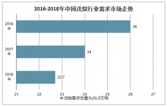 2018年我國戊烷行業需求量26萬噸,同比2017年的24萬噸增長了8.33%。