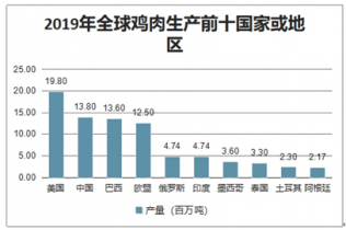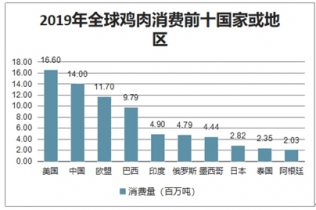 對比2019年全球TOP10雞肉生產國榜單和TOP10雞肉消費國榜單可知,全球范圍內雞肉生產和消費的地區格局較為穩定,2018年和2019年的變化不大。此外,大部分雞肉消費大國同時也是雞肉生產大國,基本上可以滿足自產自銷。但日本是一個例外,其在2019年估計將消費2.82百萬噸雞肉,但從其未上榜TOP10雞肉生產國榜單可知,日本雞肉產量應小于2.17百萬噸,這也意味著日本國內超過1/4的雞肉需要依賴進口。