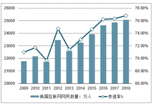 2009-2018年美國(guó)互聯(lián)網(wǎng)網(wǎng)民數(shù)量及滲透率走勢(shì)