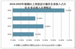 2016年我國規(guī)模以上創(chuàng)意設計服務企業(yè)收入占文化企業(yè)總收入的12.3%。到2019年規(guī)模以上創(chuàng)意設計服務企業(yè)收入占文化企業(yè)總收入14.2%。