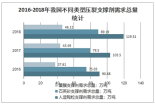 2016-2018年我國不同類型壓裂支撐劑需求總量統(tǒng)計