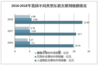 2016-2018年我國不同類型壓裂支撐劑規(guī)模情況