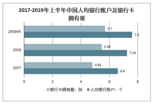 2017-2019年上半年中國人均銀行賬戶及銀行卡擁有量
