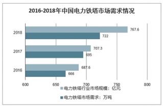 我國對電網投資、建設的持續推進,為鐵塔行業帶來了廣闊的市場機會。2017年我國電力鐵塔市場規模為707.3億元,2018年電力鐵塔規模增長到767.6億元。目前,國際范圍電力需求增加,輸電線路長度將保持穩定增加,電力鐵塔作為輸送電力的關鍵產品,市場發展前景廣闊。伴隨著鐵塔產品技術水平逐步提高,使得鐵塔產品逐漸向高、精、尖方向發展。
