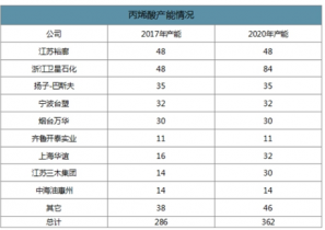 表:2019年中國丙烯酸及酯(分企業/分產品)產能