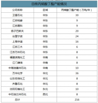 表:2015-2019年全球丙烯酸部分企業新增產能及投產時間