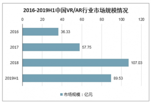 2016-2019H1中國(guó)VR/AR行業(yè)市場(chǎng)規(guī)模情況