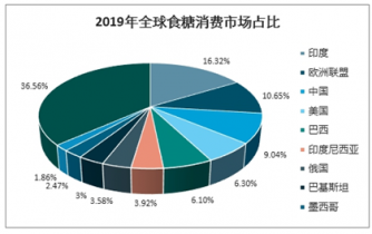 2019年印度食糖消費量約2850萬噸,占全球糖消費比重的16.32%,遠(yuǎn)超其他國家及地區(qū),歐盟地區(qū)糖消費量1860萬噸,占比10.65%,排名第二。中國糖消費量為1580萬噸,占比9.04%,排名第三。