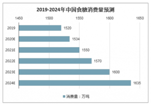 2015全球糖消費量1.69億噸,2016全球糖消費量1.708億噸,2017全球糖消費量1.7337億噸,2018全球糖消費量1.7333億噸,2018全球糖消費量1.75億噸,2015-2019年全球糖消費量從1.69億噸增長至1.75億噸,年均復(fù)合增速僅為0.8%。