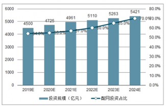 2019-2024年中國電網(wǎng)投資規(guī)模及配網(wǎng)投資占比預測