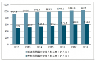2012-2018年中城鎮及農村居民國內旅游人均花費