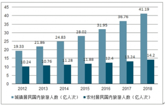 2012-2018年中城鎮及農村居民國內旅游人數