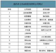國內本土OLED發光材料公司統計
