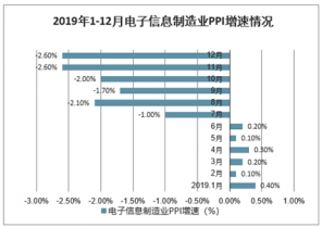 2019年電子信息制造業生產者出廠價格同比下降0.9%。12月份,電子信息制造業生產者出廠價格同比下降2.6%。