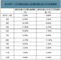 2019年1-12月通信設(shè)備行業(yè)增加值和出口交貨值增速