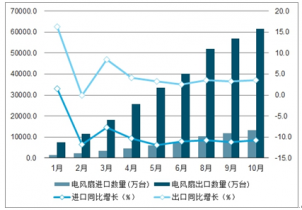 2019年1-10月中國電風(fēng)扇進(jìn)出口數(shù)量及進(jìn)出口金額統(tǒng)計(jì)表