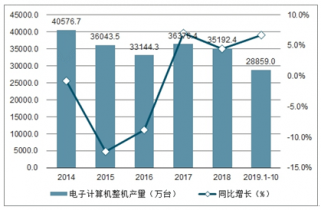 10月中國電子計算機整機產(chǎn)量為3316.7萬臺,同比增長8.6%;2019年1-10月中國電子計算機整機產(chǎn)量為28859萬臺,同比增長6.7%。