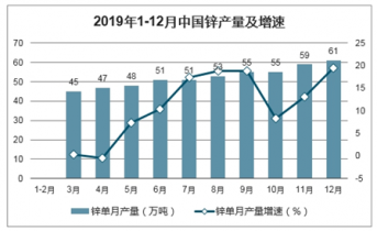 2019年1-12月中國(guó)鋅產(chǎn)量及增速