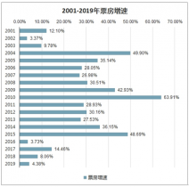 2001-2019年票房增速