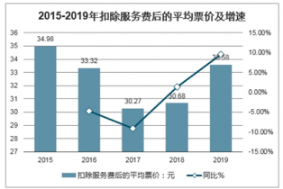2015-2019年扣除服務(wù)費(fèi)后的平均票價(jià)及增速