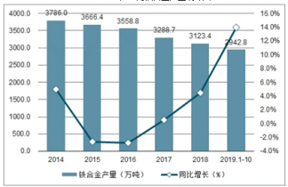 2019年1-10月中國(guó)鐵合金產(chǎn)量及增速統(tǒng)計(jì)表