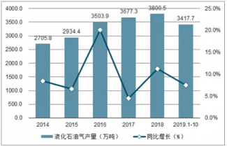 2019年1-10月中國液化石油氣產(chǎn)量及增速統(tǒng)計表