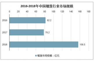 2016年我國榴蓮市場規模達到82.2億元,2017年榴蓮市場規模達到78.2億元,2018年榴蓮市場規模達到156.5億元,同比增長100.13%。