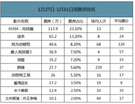 1月27日-1月31日周票房排名