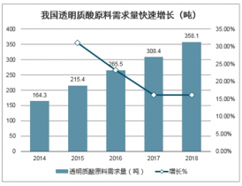 我國透明質酸原料需求量快速增長(噸)