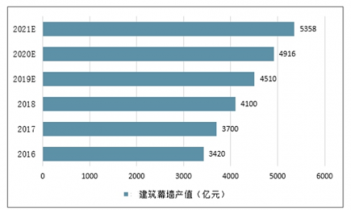 我國(guó)建筑幕墻工業(yè)從1978年開(kāi)始起步,經(jīng)過(guò)多年的發(fā)展,特別是21世紀(jì)90年代的高速發(fā)展,至21世紀(jì)初已成為世界第.一幕墻生產(chǎn)大國(guó)和使用大國(guó),建筑幕墻工程總產(chǎn)值已從2010年的1500億元增長(zhǎng)至2017年的3700億元左右。根據(jù)《建筑裝飾行業(yè)“十三五”發(fā)展規(guī)劃綱要》目標(biāo),預(yù)計(jì)到了2020年中國(guó)建筑幕墻工程總產(chǎn)值將突破5000億元,年均增長(zhǎng)速度在11%左右。