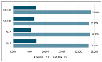 2017-2019年H1二次設(shè)備行業(yè)毛利率及凈利率