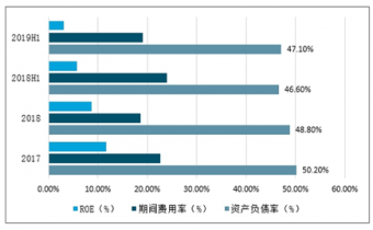 2017-2019年H1電站設(shè)備行業(yè)資產(chǎn)負(fù)債率及期間費(fèi)用率