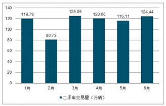 從2019年各月度二手車交易額市場走勢來看,其中2月份二手車交易額最低,為80.73萬輛,但同比2018年同期增長1.68%,上半年僅5月份市場交易額出現(xiàn)下滑傾向,同比下降3.49%,6月份當月我國二手車交易額達124.44萬輛,同比增長17.76%。