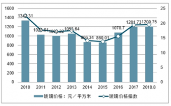 2010-2018年中國玻璃價格指數與玻璃價格變化情況