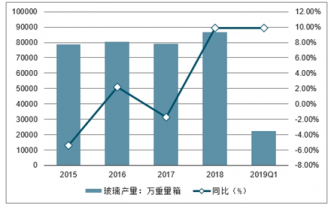 2018年,中國平板玻璃銷量為81812萬重量箱,同比增長6.7%;2019年一季度,平板玻璃銷量為19356萬重量箱,同比增長10.9%。